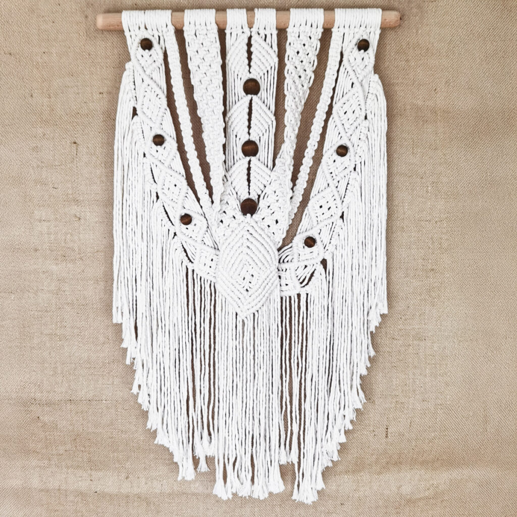 Każda makrama powstaje ręcznie, z naturalnych sznurków bawełnianych i z dbałością o najmniejszy detal. Moje projekty to połączenie tradycyjnej techniki z nowoczesnym stylem boho, które sprawdzają się zarówno w domowych wnętrzach, jak i w wyjątkowych dekoracjach okolicznościowych.